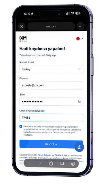 “XM Global’de gerçek hesap aç ve kayıt formuna git.